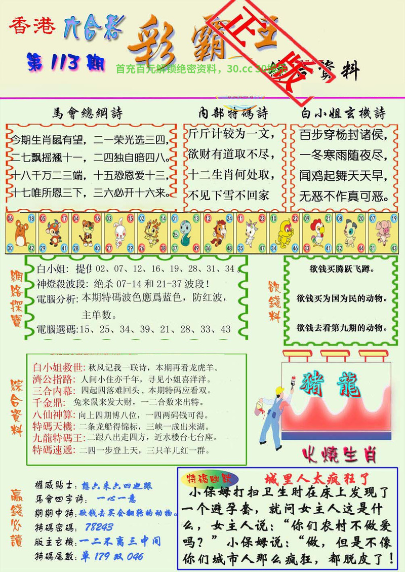 112期:单【牛羊蛇猪】双【鼠马猴】开:龙02准